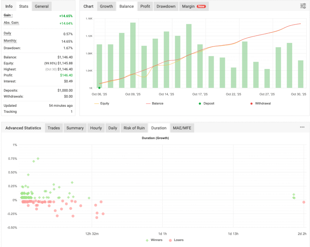 - Automatic Stop Loss and Take Profit – Built-in risk management features that protect each trade.