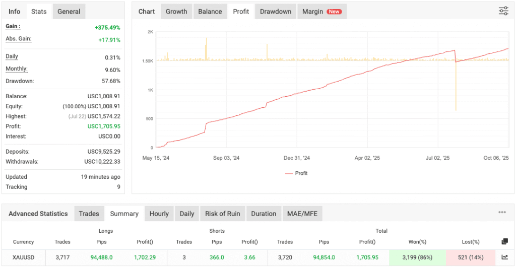 - Direction Bias – During testing, the EA seemed to place only buy trades. Whether this is a fixed setting or an adaptive behavior depending on market conditions is currently unclear.